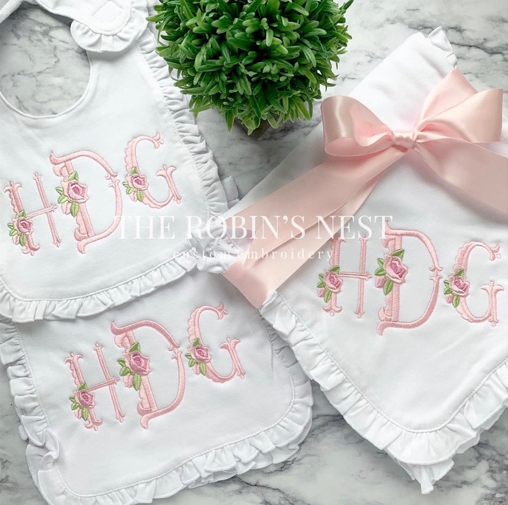 Soft and sweet ruffle blanket monogrammed for your new bundle of joy!