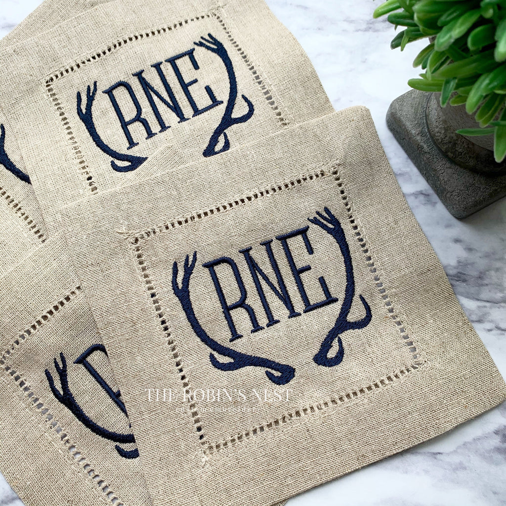 Linen/Cotton Blend Hemstitched Cocktail Napkins - Antler 2