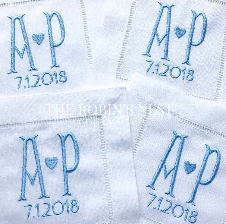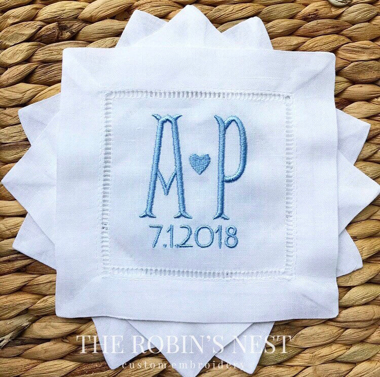 An amazing way to commemorate the special date! Monogrammed napkins with date of engagement, anniversary or wedding. Let your guests take these home as a reminder of this wonderful occasion or share as a gift for that special couple!