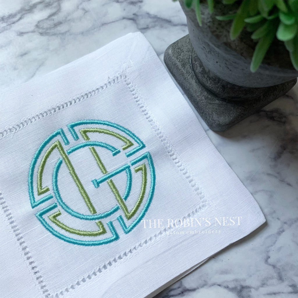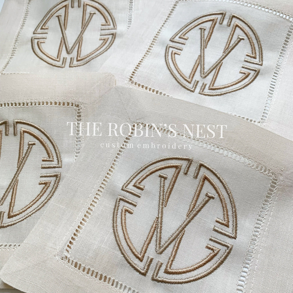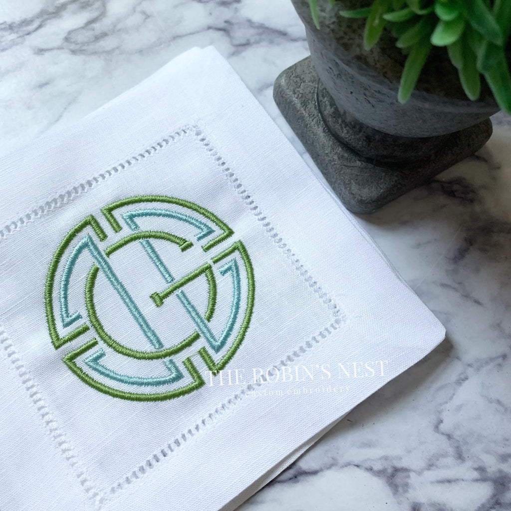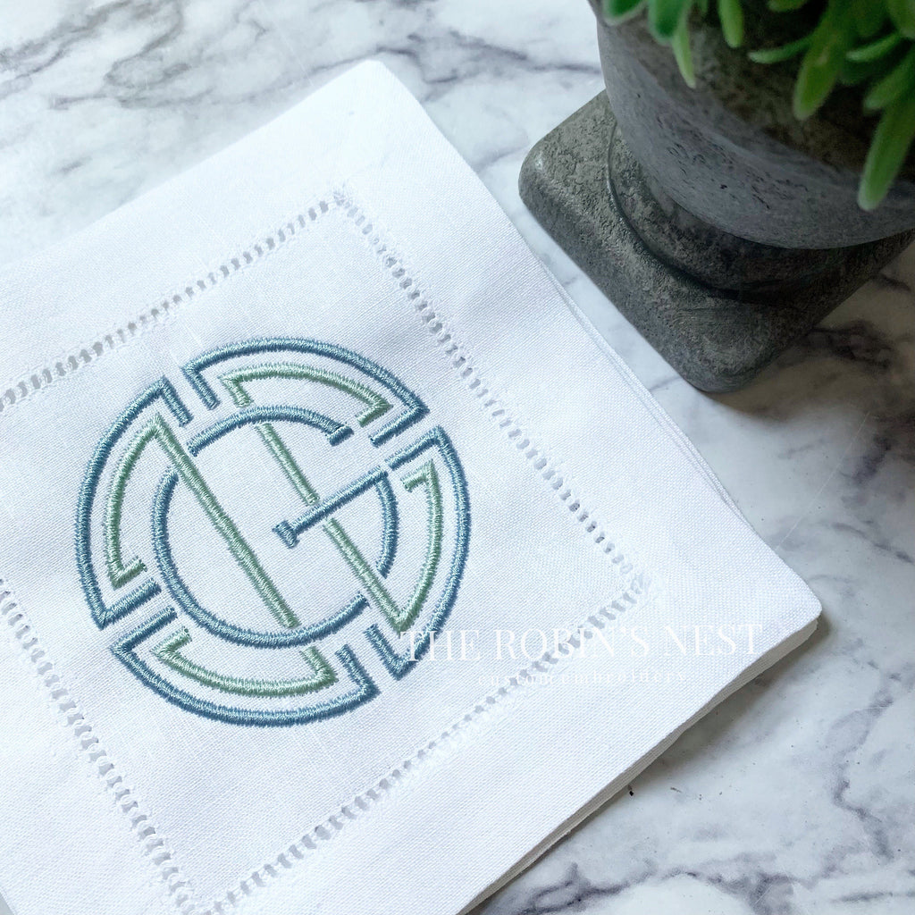 Linen/Cotton Blend Hemstitched Cocktail Napkins - Medallion