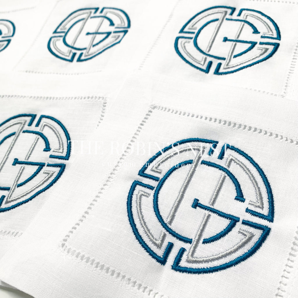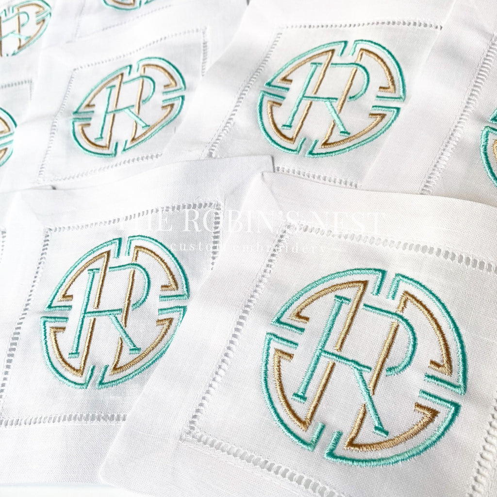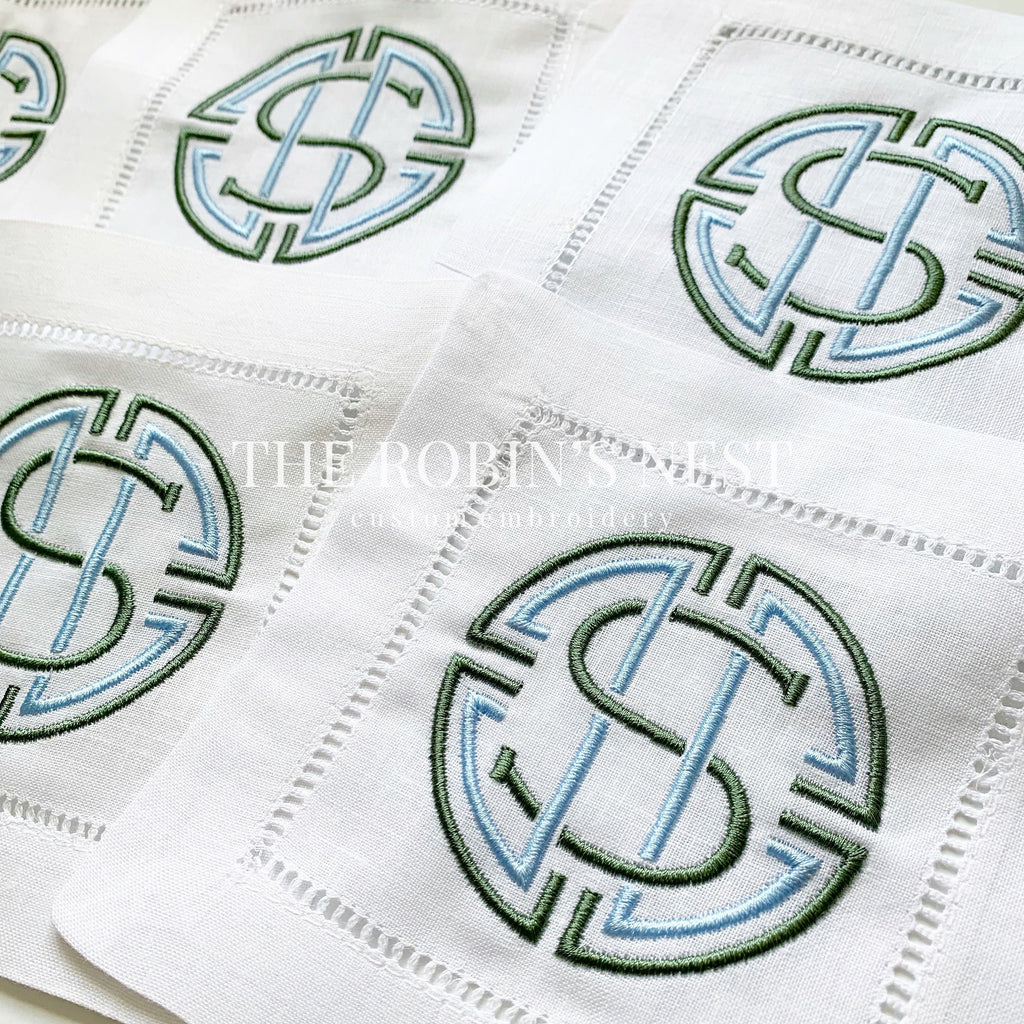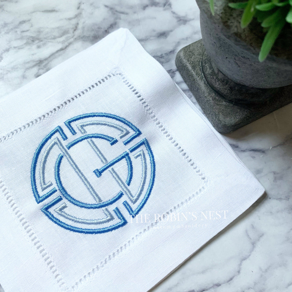 Linen/Cotton Blend Hemstitched Cocktail Napkins - Medallion