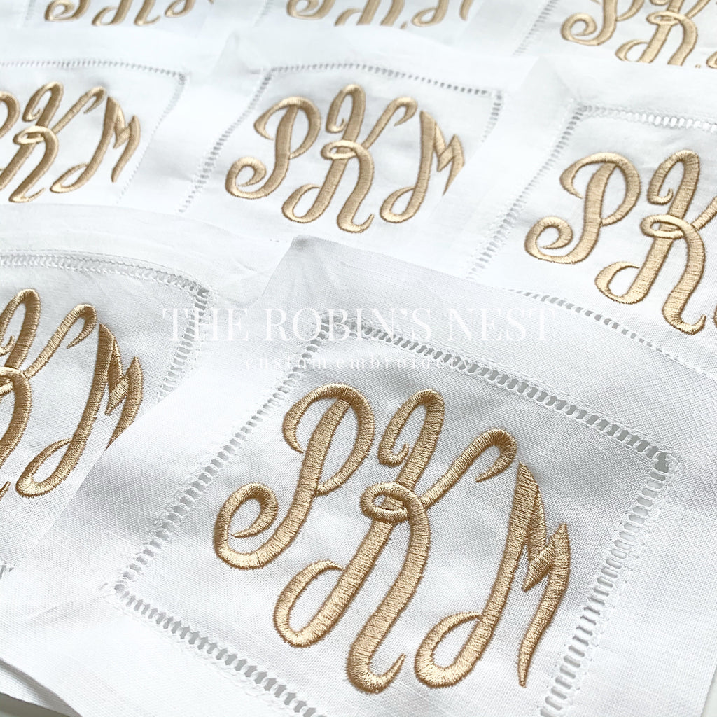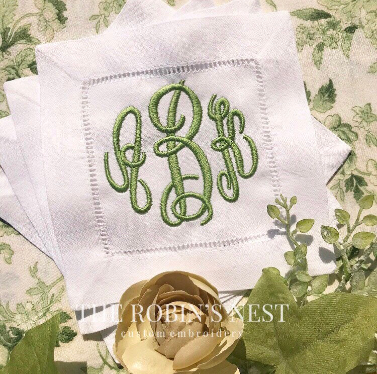 Beautiful set of four embroidered linen cocktail napkins, monogrammed to perfection!