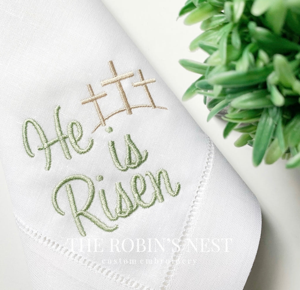 Linen/Cotton Blend Hemstitched Dinner Napkin - He is Risen