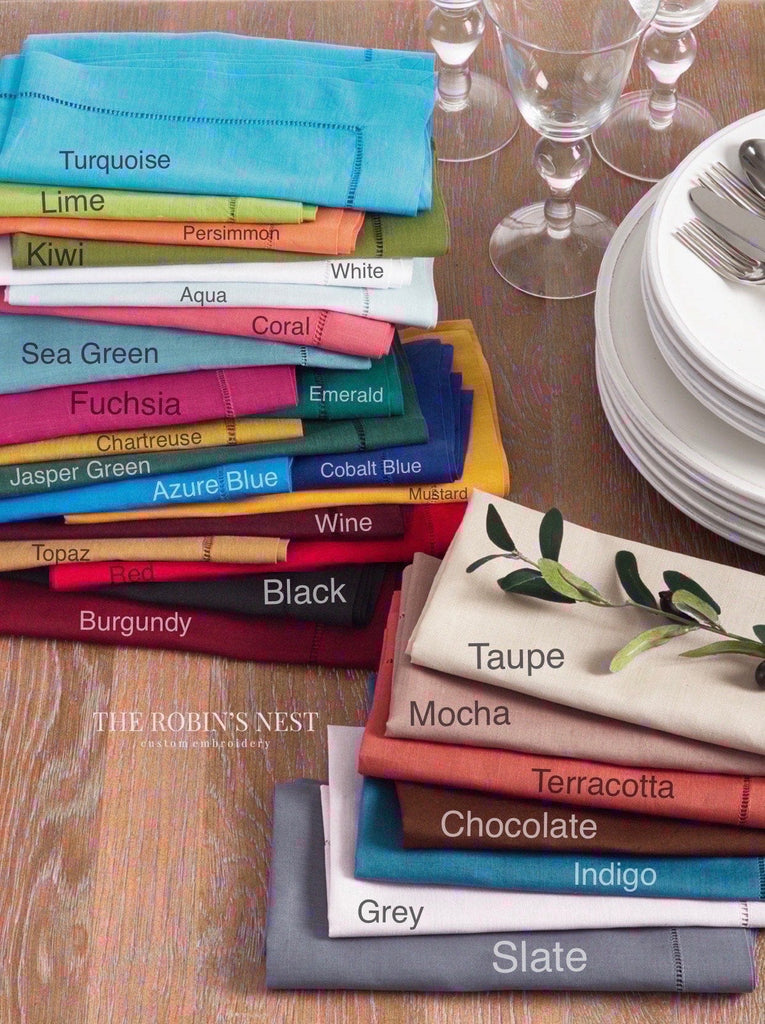 Linen/Cotton Blend Hemstitched Dinner Napkin- Multiple Colors Available