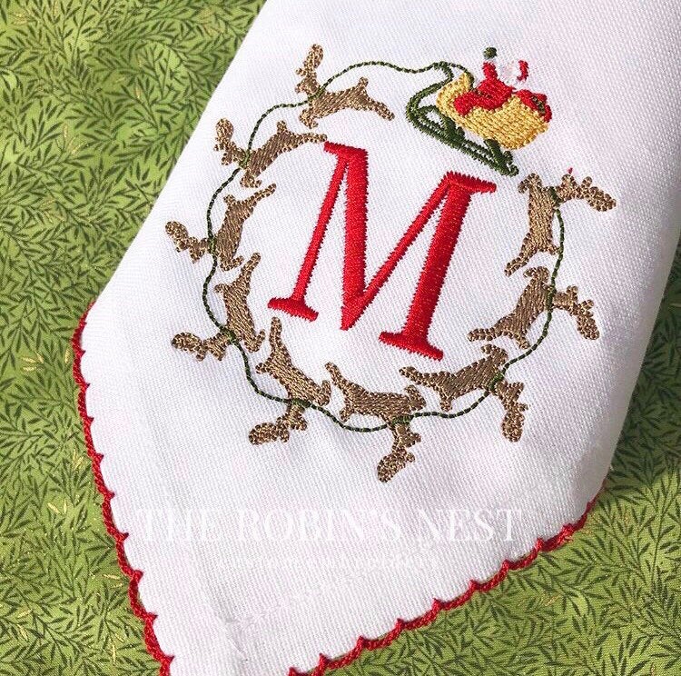 Cotton Picot Napkin - Red - Santa's Sleigh