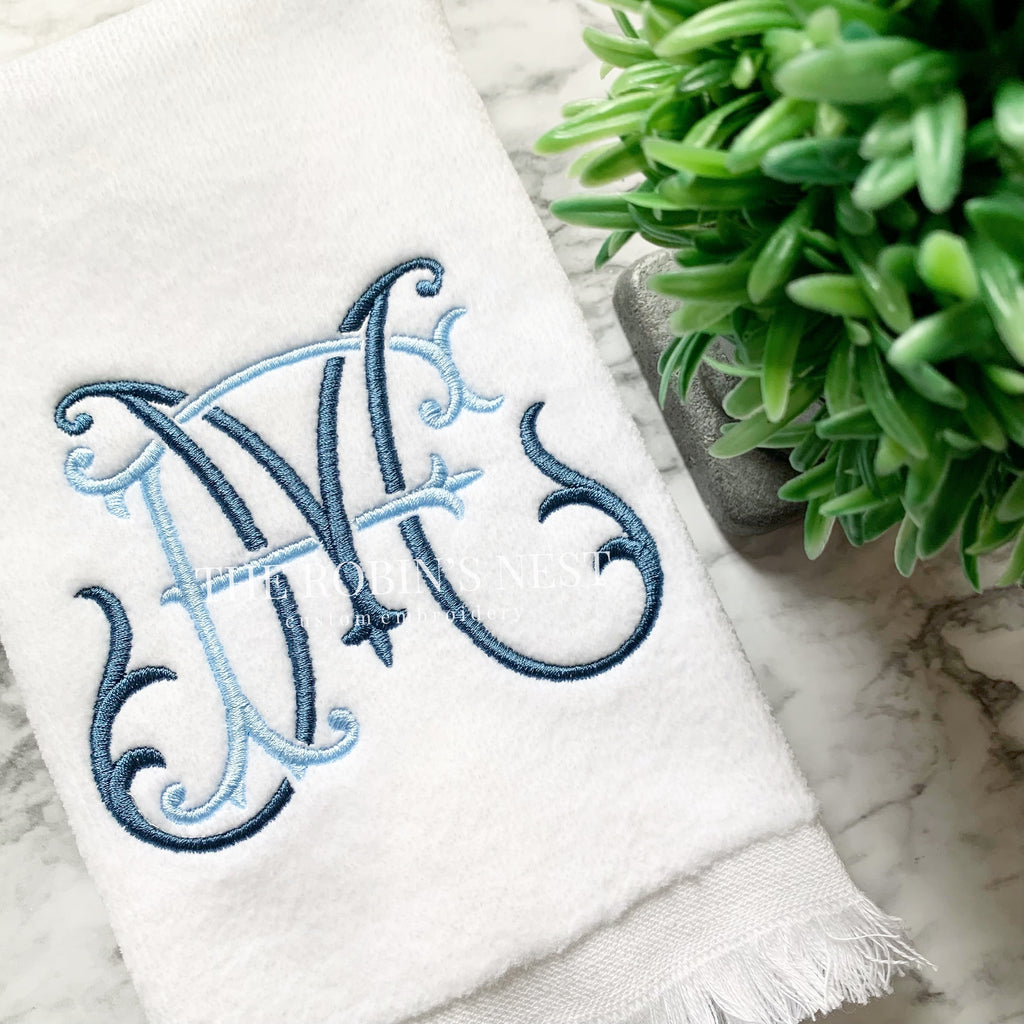 Beautifully embroidered fingertip towels with your gorgeous double chic monogram! These are the perfect accessories to complete the finishing touches to any bathroom. Your guests will definitely notice your attention to detail with these soft towels!