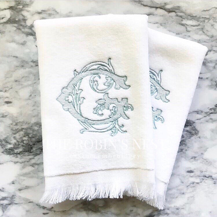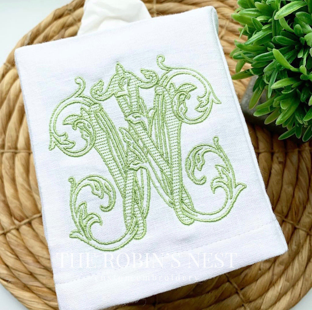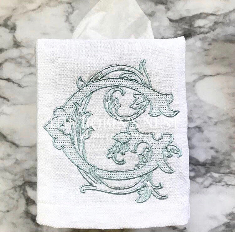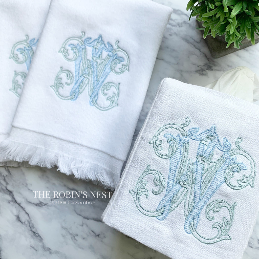 Beautifully embroidered fingertip towels and/or linen tissue cover with your gorgeous monogram! These are the perfect accessories to complete the finishing touches to any bathroom. Your guests will definitely notice your attention to detail with these soft towels! Can be ordered individually or as a set.