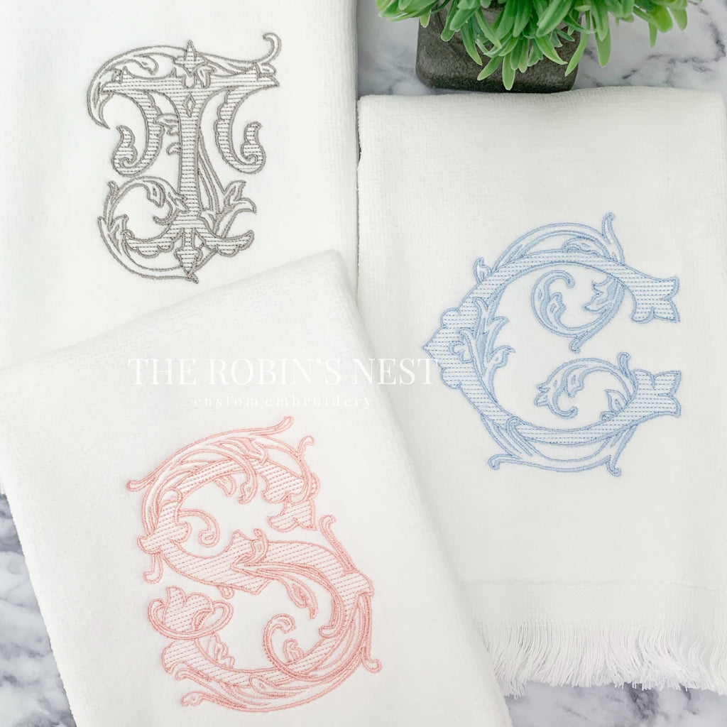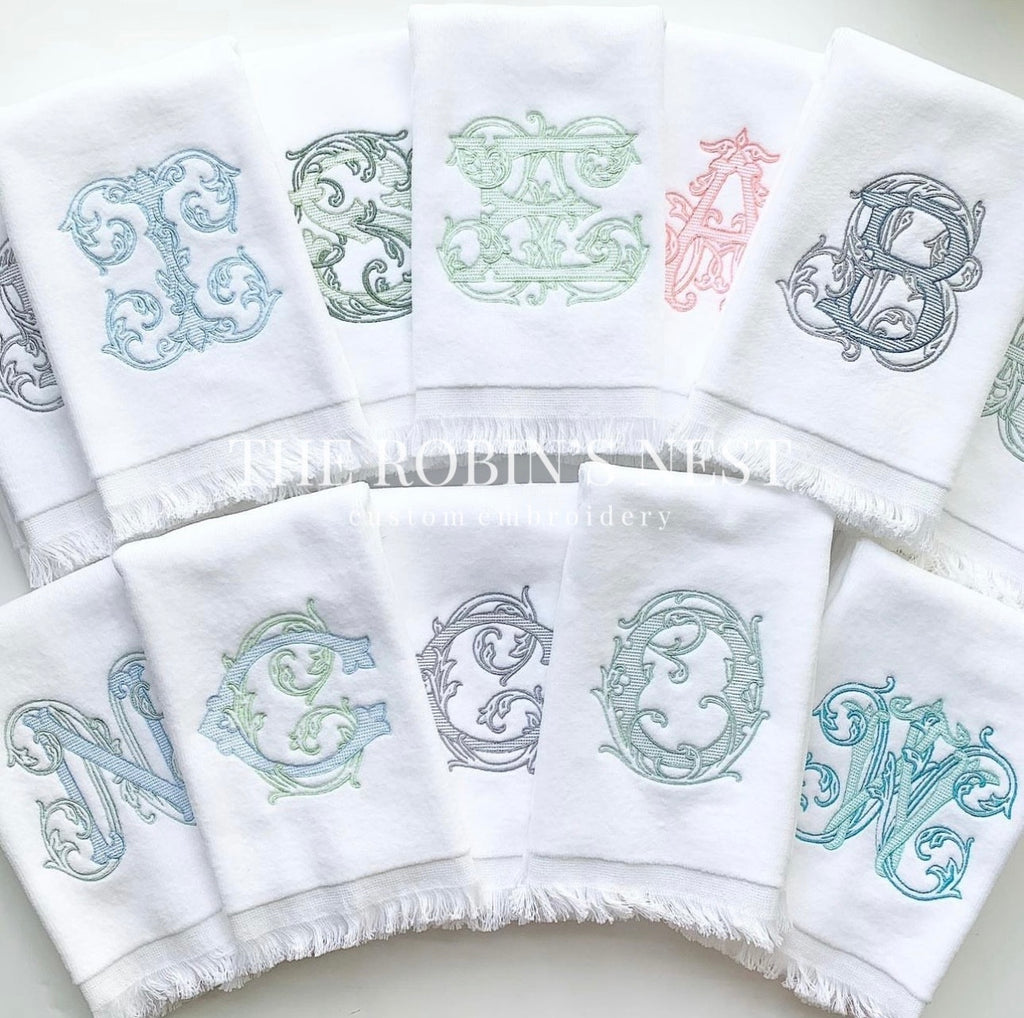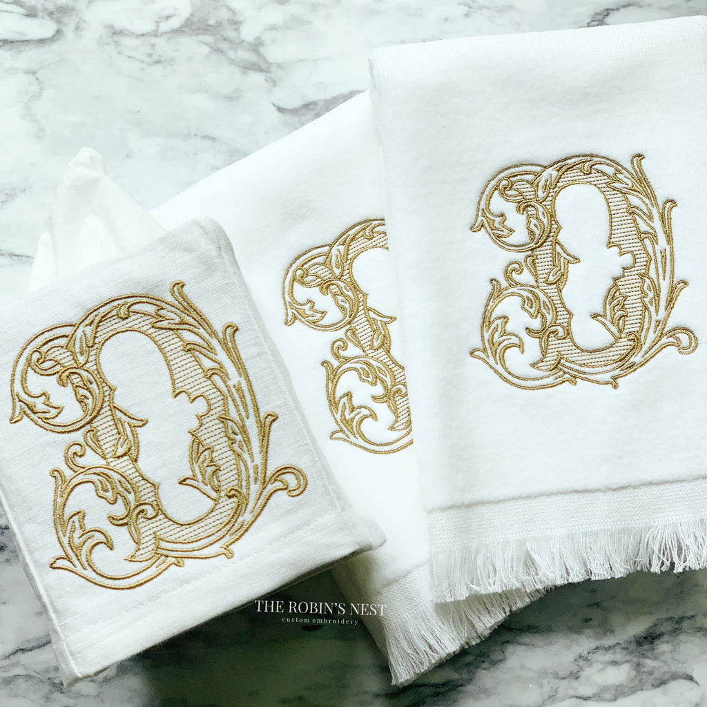 Beautifully embroidered fingertip towels and/or linen tissue cover with your gorgeous monogram! These are the perfect accessories to complete the finishing touches to any bathroom. Your guests will definitely notice your attention to detail with these soft towels! Can be ordered individually or as a set.