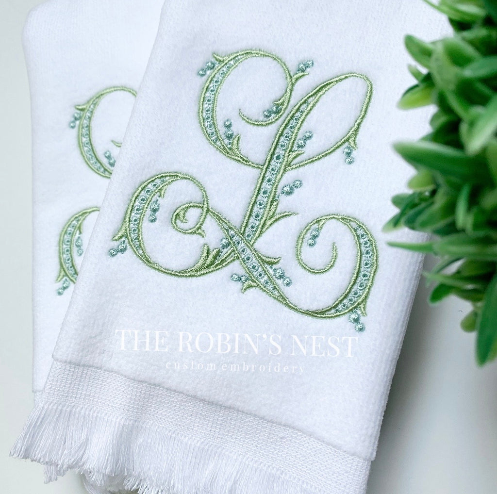 Beautifully embroidered fingertip towels and/or linen tissue cover with your gorgeous monogram! These are the perfect accessories to complete the finishing touches to any bathroom. Your guests will definitely notice your attention to detail with these soft towels! Can be ordered individually or as a set.