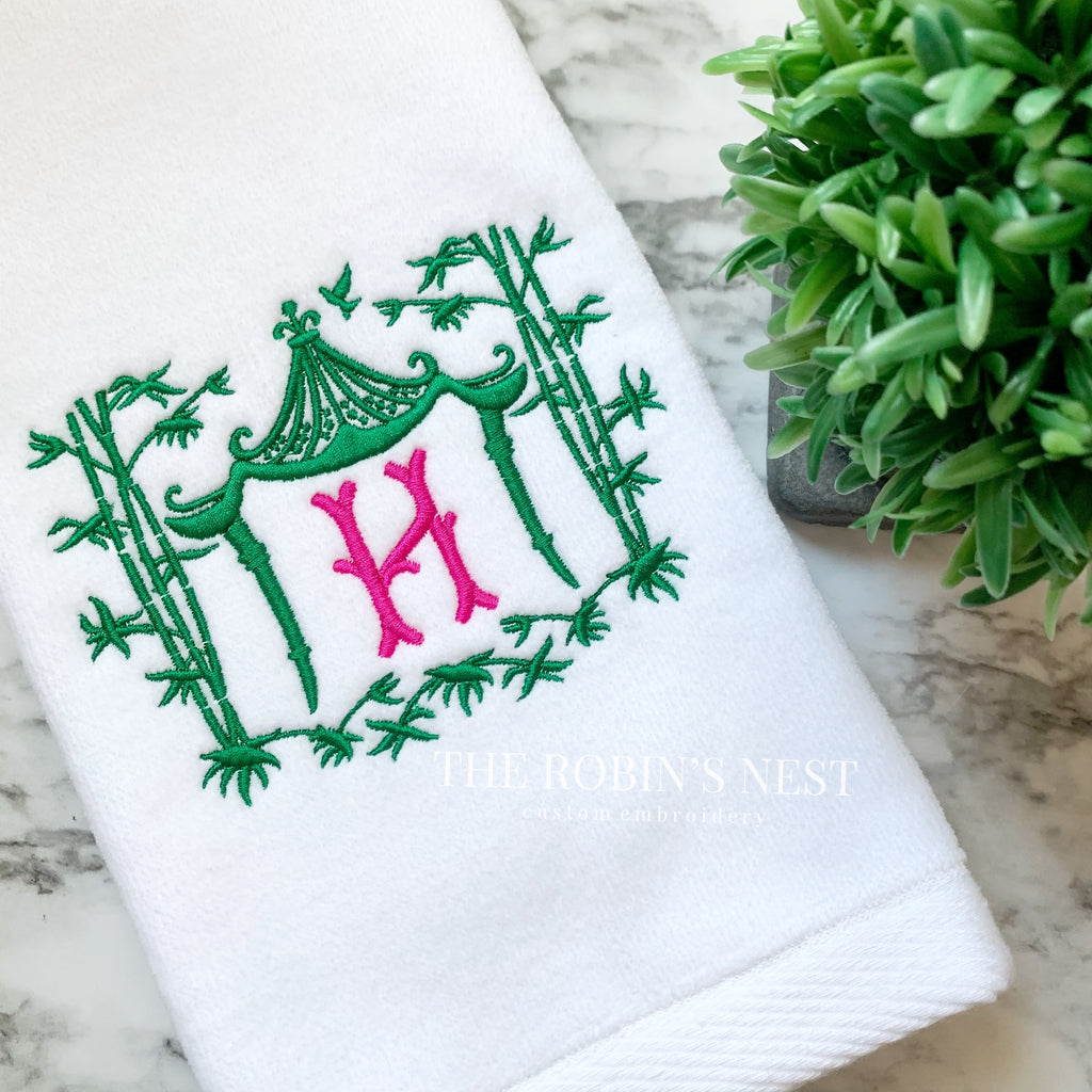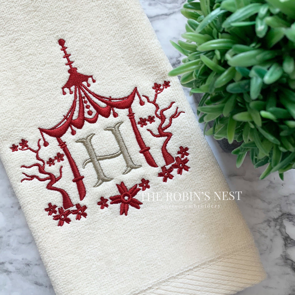A beautiful, monogrammed hand towel for your powder room!