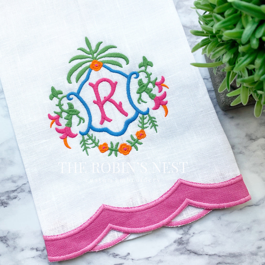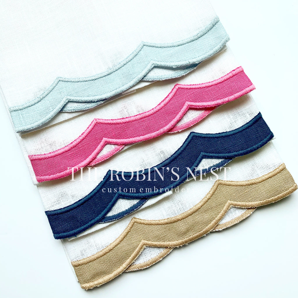 100% Linen Guest Towel with Scalloped Appliqué Edge