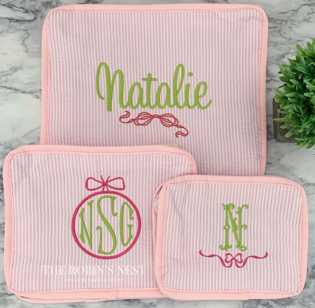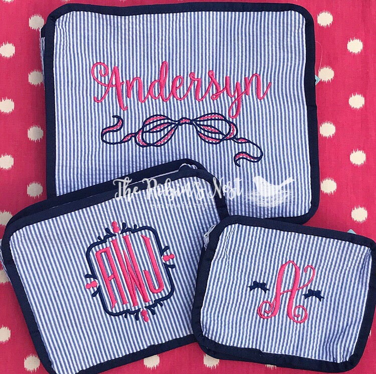 Stacking set of 3 organizers that make the perfect travel accessory! Stay organized with these versatile and stylish bags. Let me personalize them to perfection for you!