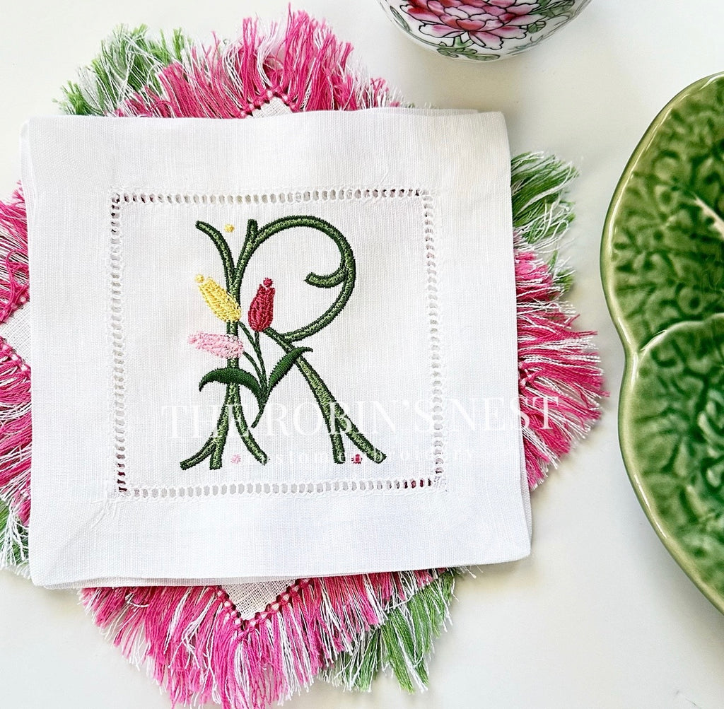 Linen/Cotton Blend Hemstitched Cocktail Napkins - Tulips