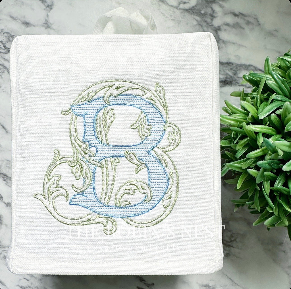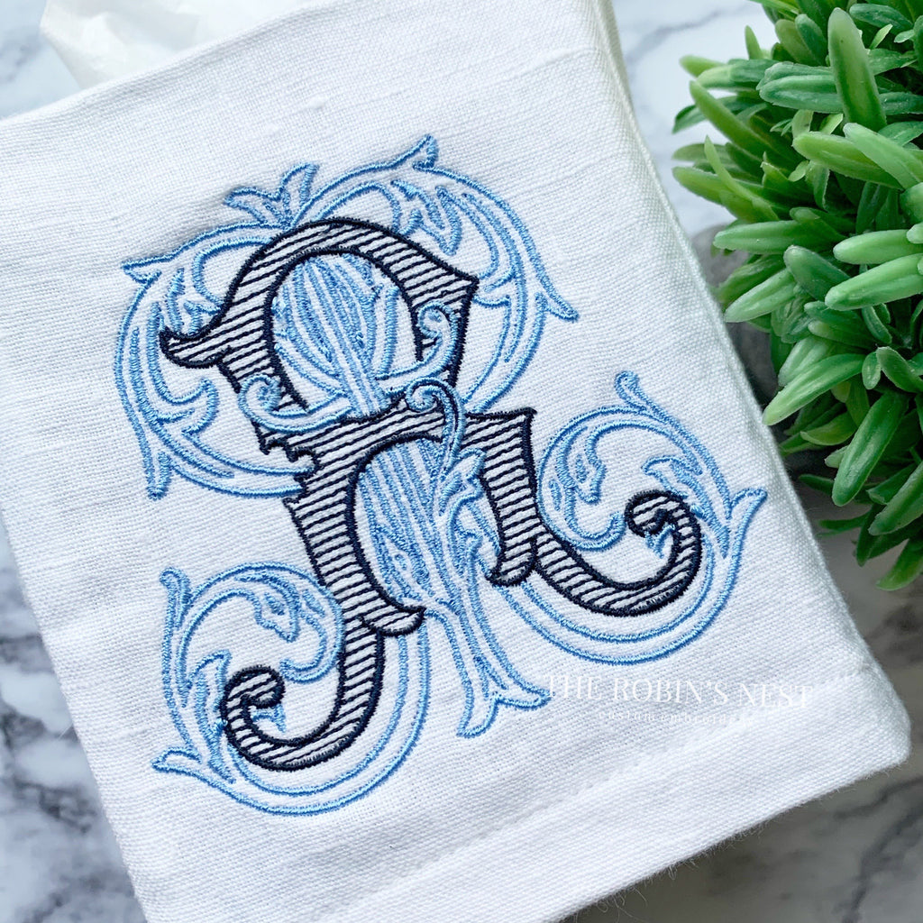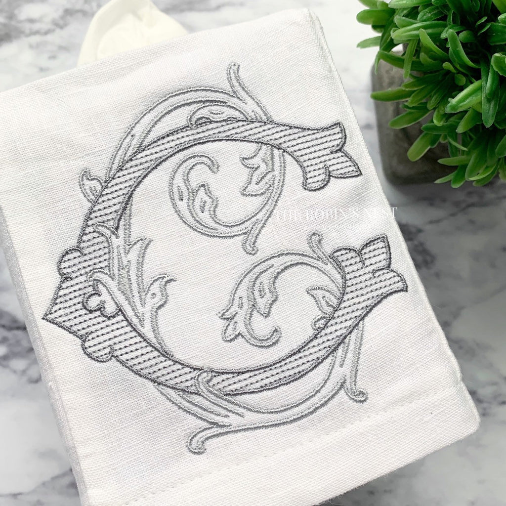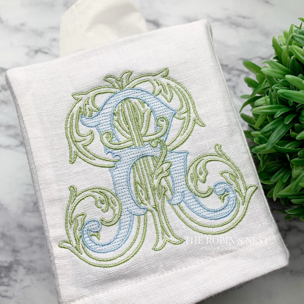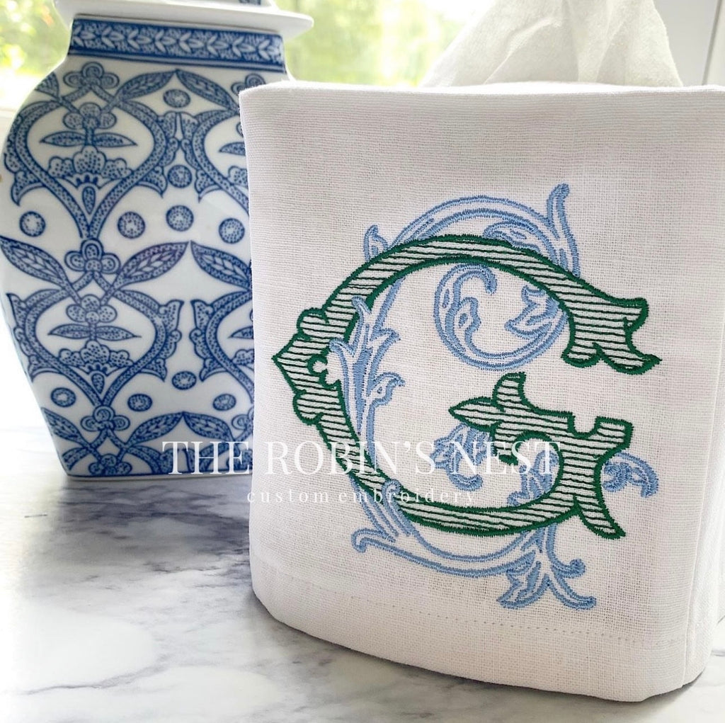Linen Tissue Box Cover - Antique Monogram