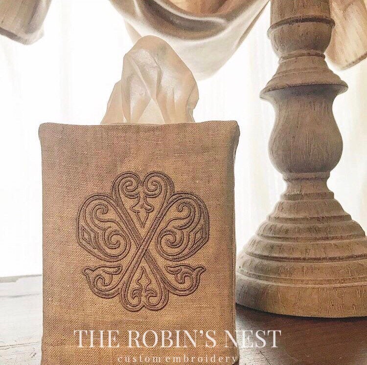 A wonderful way to display a necessity that doesn’t always come in the prettiest of boxes! Customize these for your powder room, living area or bedroom! Makes a great hostess gift!