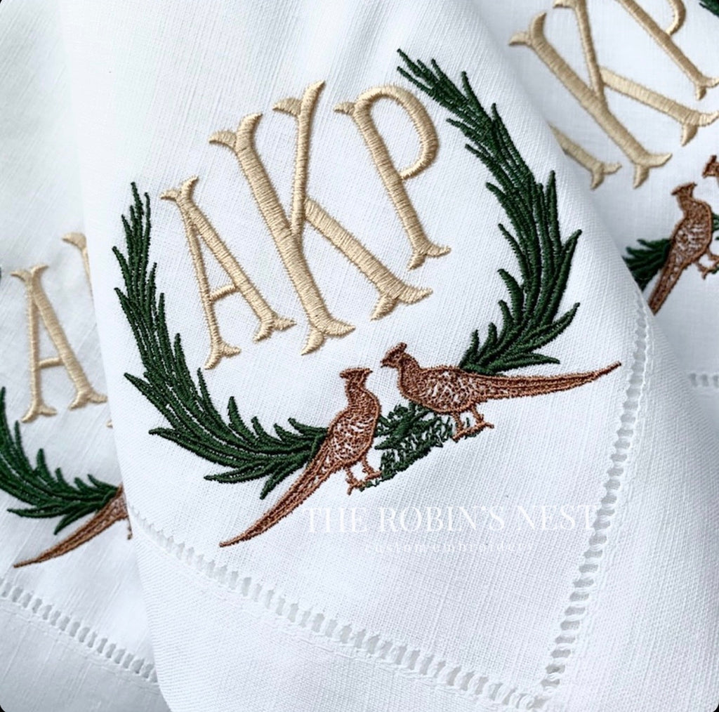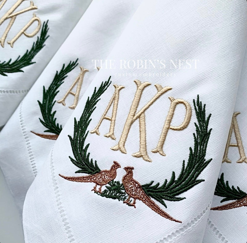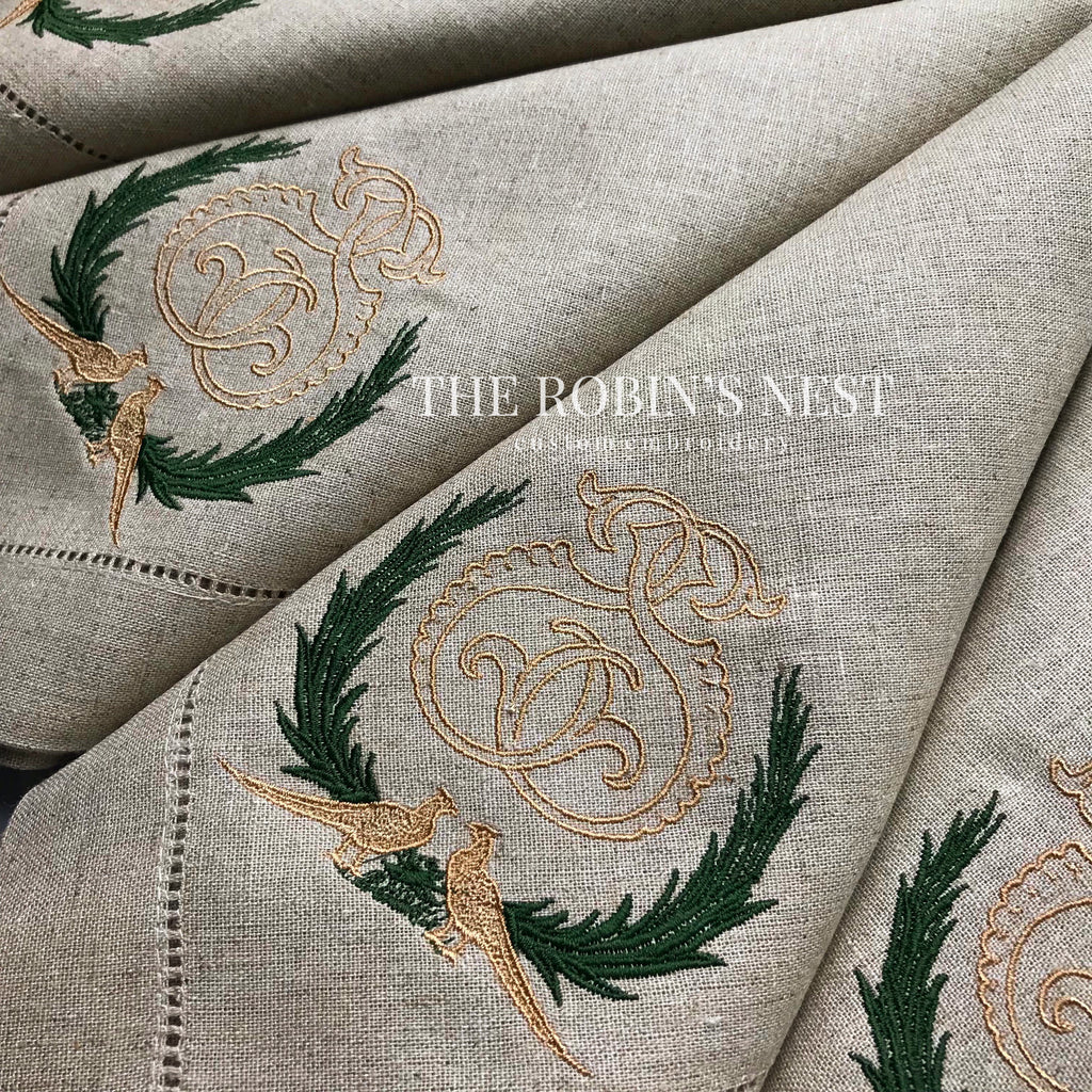 These beautiful, hemstitched linen/cotton blend dinner napkins are the perfect detail for your next dinner party or holiday setting! I have many different font styles available! Feel free to message me with your proof requests!